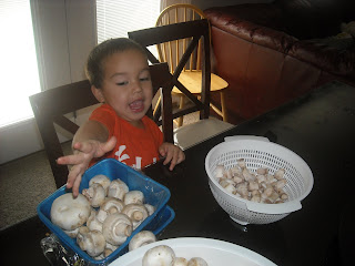 It started as a normal Thanksgiving. Kai and I were de-stemming mushrooms to make stuffed mushrooms. I made sausage & cream cheese stuffed mushrooms and artichoke stuffed mushrooms. Surprisingly, the artichoke ones were delicious! I just knew I like artichokes and mushrooms and now I know I like them together!!